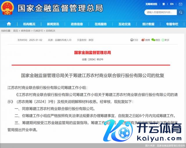 近日,国度金融监督束缚总局发布批文,快乐筹建江苏农村生意聚拢银行,监管步骤,筹建责任小组应严格按照关联法律执法条款办理筹建事宜,自批复之日起 6 个月内完成筹建责任。筹建时辰给与江苏金融监管局的监督指挥。筹建责任完成后,应按照关联步骤和标准向江苏金融监管局提议开业苦求。